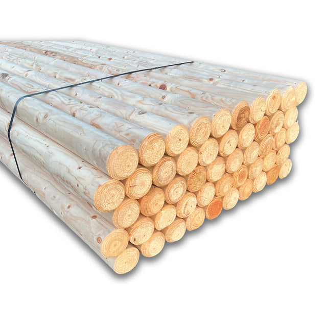 Unsere Stangen sind standardmäßig in 300 cm Länge und 8–10 cm Durchmesser erhältlich. Sonderanfertigungen sind derzeit nicht möglich.